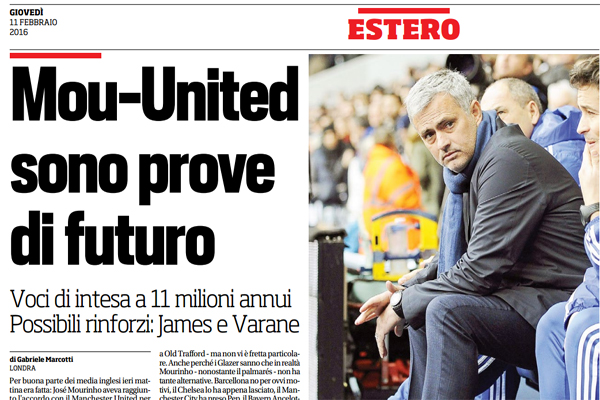 Corriere dello Sport: “Mou-United sono prove di futuro. Voci di intesa a 11 milioni annui. Possibili rinforzi: James e Varane”
