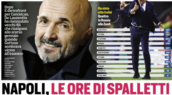 Il club partenopeo ha virato con decisione su Luciano Spalletti. C’è stato un lungo tour, in questi cinque mesi, e dialoghi avviati e poi interrotti e idee germogliate e poi appassite.