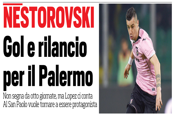 “Lopez esclude la crisi. Ed è già qualcosa. Ma Ilija Nestorovski non segna da otto partite, sessantanove giorni, un’eternità per chi vive di pane e gol. Quella che l’attaccante definiva una storia speciale tra lui e il Palermo rischia di trasformarsi in una favola al contrario: squadra in cattive acque, goleador all’asciutto. Dopo un avvio straordinariamente immenso, la sua stella si è spenta. Il “maestro”, soprannome che gli hanno dato in Macedonia dopo il suo gol all’Italia, è tornato a scuola per capire come riprendere a segnare. Il sogno che «nessuno – confessa – può togliermi…», cioè diventare capocannoniere della Serie A, dopo gli oltre due mesi di astinenza, torna nel cassetto. A.A.A. GOL CERCASI. In assoluto, comunque, il bomber non sarebbe indietro rispetto alle aspettative perché, malgrado il digiuno, nei confronti di chi pensava che in Italia sarebbe stato impresentabile, si è preso una bella rivincita. I sette gol però non bastano. A lui e alla classifica. La sua media e gli obiettivi dei record si sono improvvisamente frantumati, il Palermo è finito in posizione più critica e Ilija cerca ora il riscatto. Napoli è l’occasione da cogliere al volo. Già, la squadra che l’avrebbe voluto in questo giro di mercato e che per Nestorovski avrebbe rappresentato il vero trampolino di lancio, un autentico boom, dopo un 2016 ricco di risultati, definito “indimenticabile” dal macedone che per fortuna all’inizio non parlava italiano e non capiva le critiche: la notizia che sarebbe diventato nuovamente papà, un radicale cambiamento di vita, il contratto col Palermo, tante soddisfazioni calcistiche, capocannoniere in Croazia, scelto nella squadra ideale, il premio come calciatore dell’anno in Macedonia, il gol all’Italia per smentire gli scettici, le prodezze con i rosa. […]”. Questo quanto si legge su “Il Corriere dello Sport”.