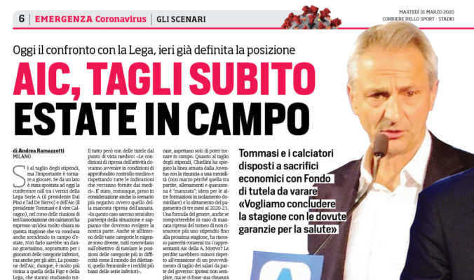 Corriere dello Sport: “Oggi il confronto con la Lega, ieri già definita la posizione. Aic: «Tagli subito e estate in campo»”