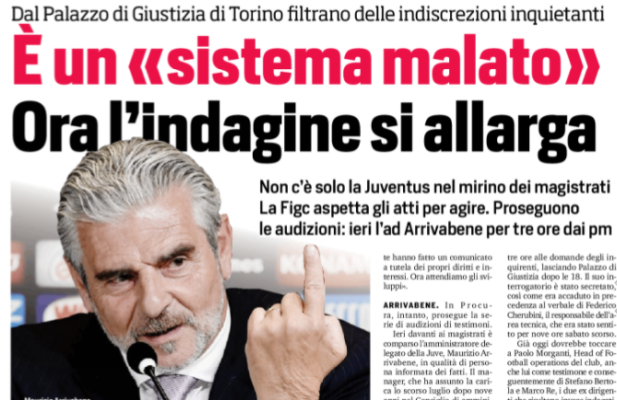 Corriere dello Sport: “Ora l’indagine si allarga. È un «sistema malato». Non c’è solo la Juventus nel mirino dei magistrati”