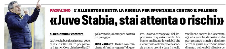 L’edizione odierna del “Corriere dello Sport” riporta le dichiarazioni di Pasquale Padalino, allenatore della Juve Stabia, in vista della sfida contro il Palermo: