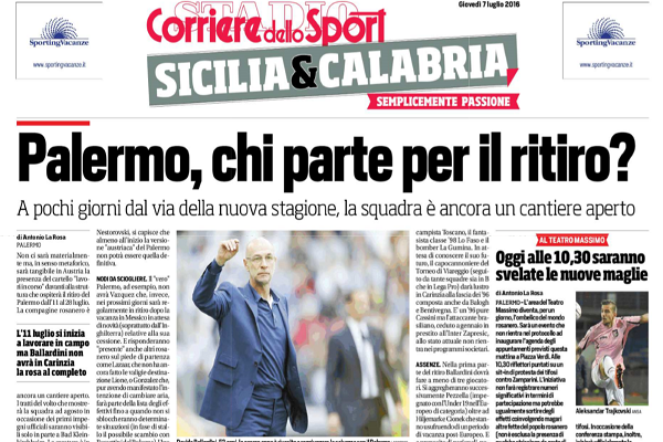Corriere dello Sport: “Palermo, chi parte in ritiro? A pochi giorni dal via della nuova stagione, la squadra è ancora un cantiere aperto”