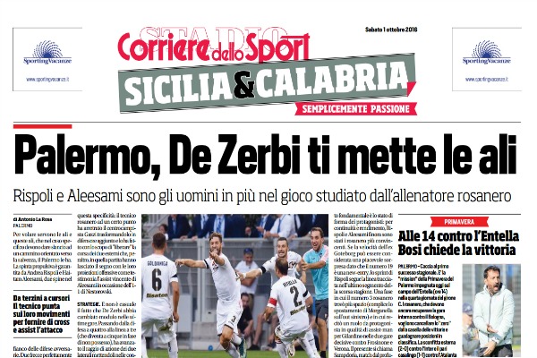 Corriere dello Sport: “Palermo, De Zerbi ti mette le ali: Rispoli e Aleesami sono gli uomini in più nel gioco studiato dall’allenatore rosanero”