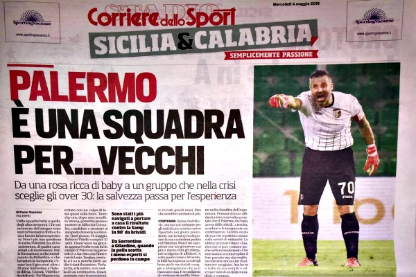Corriere dello Sport: “Palermo, è una squadra per…vecchi. Ecco i sei uomini per raggiungere la salvezza”