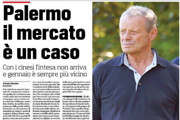 “Poco più di un mese fa, il presidente Zamparini annunciò quella che sembrava una svolta nella eterna trattativa col gruppo cinese interessato a rilevare il Palermo: entro fine ottobre, si sarebbe dovuti passare dalla parole ai fatti, firmando un documento di massima su tempi e modi di acquisto del pacchetto azionario del club. Sono passati 40 giorni, e non solo non è arrivata nessuna firma ma l’operazione sembra aver subìto un rallentamento. I tempi si sono ulteriormente dilazionati, le certezze in materia affievolite. Situazione che preoccupa fortemente innanzitutto lo stesso Zamparini, consapevole, aldilà di tutto, dell’ineluttabilità di un suo addio al Palermo ma soprattutto i tifosi che hanno ragione di temere che questo stallo incida gravemente sulle sorti di una stagione già compromessa in avvio. La squadra è penultima, ha vinto una sola partita su 12, ha già cambiato allenatore, e nonostante mostri qualche progresso, dista 4 punti dalla zona salvezza. È stata costruita male, ormai il dato è chiaro a tutti, e a parte gli sforzi di De Zerbi di darle un gioco, a gennaio occorrono rinforzi di spicco per provare a coprire i limiti emersi. L’ingresso di nuovi soci entro la fine del 2016 era visto come una speranza per poter operare sul mercato con decisione e non dovendosi accontentare di scarti o prestiti. Ma i continui rinvii della trattativa con i potenziali acquirenti allontanano questa prospettiva. Ne consegue che i soldi per intervenire sul mercato dovrebbe metterli Zamparini che però non li ha messi già in estate ribadendo di non voler più investire, come del resto mostrato dalle ultime, deficitarie campagne. Il patron si muove coi soliti criteri, nonostante i proclami su nuovi presidenti cui affidare la società o banche d’affari cui aveva affidato mandati per la vendita del club. D’altronde il Palermo è una sua azienda e non può disinteressarsene. Fino adesso, però, prima sono venute le cessioni poi il resto, dunque a gennaio, è possibile che per arrivare a rinforzi importanti, debbano partire elementi che consentano di realizzare introiti da reinvestire in acquisti. Non i big (Nestorovski tanto per fare un nome), ma piuttosto i calciatori che non hanno convinto in pieno e che hanno tuttora un mercato interessante soprattutto a livello europeo: Hiljemark è fra questi e come lui l’altro svedese Quaison, il cui contratto scade a giugno e non è stato ancora rinnovato. Del resto, una delle piste principali su cui si muoverà il Palermo a gennaio è proprio la caccia ad un centrocampista di valore che toglierebbe loro spazio. Gli ultimi sviluppi della trattativa col fondo cinese di stato parlano di una lettera di intenti inviata a Zamparini dal gruppo di Pechino. Uno scambio di opinioni più che una vera e propria proposta. Ci sono poi dei probabili passaggi che rischiano di rallentare ancor più l’affare: per esempio, lo sbarco a Palermo dei cinesi sarebbe inevitabilmente legato alla realizzazione di strutture (le solite, stadio e centro sportivo di proprietà) per cui è necessario un contatto non solo con la società di calcio ma con le istituzioni cittadine e regionali. Contatto che non risulta ancora avvenuto a nessun livello. In ogni caso, pur con una lentezza esasperante, il discorso prosegue tanto che a fine novembre dovrebbe esserci un incontro con i rappresentanti del fondo, in Italia o addirittura con un viaggio in Cina da parte di emissari rosanero, se non dello stesso Zamparini. I dubbi non sono tanto sulla concretezza quanto sui tempi necessari per imprimere una svolta e magari riaccendere un entusiasmo che sta svanendo. Zamparini sa che il suo ciclo è alla fine e vuole cedere solo a chi assicura un futuro. Ma nel frattempo il presente rischia di diventare un’agonia che non fa bene a nessuno.”. Questo quanto riportato da “Il Corriere dello Sport”.