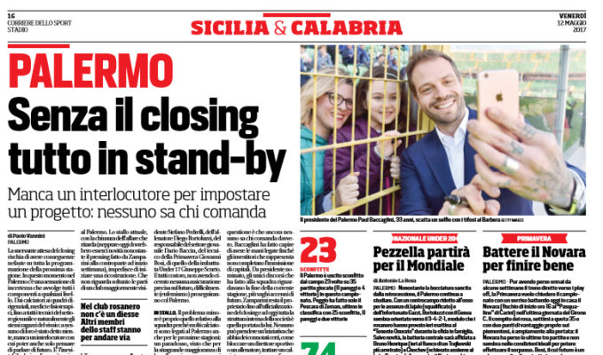 “La snervante attesa del closing rischia di avere conseguenze nefaste su tutta la programmazione della prossima stagione. In questo momento nel Palermo c’è una sensazione di incertezza che avvolge tutti i componenti a qualsiasi livello. Dai calciatori ai quadri dirigenziali, medici e fisioterapici, fino a tutti i tecnici del settore giovanile e naturalmente gli stessi ragazzi del vivaio: a nessuno di loro è stato detto niente, manca un interlocutore con cui poter anche solo pensare di parlare di futuro. E’ l’inevitabile deriva di una situazione molto delicata nella quale gli equilibri societari non sono ancora stati definiti e neppure delineati. Anche gli operatori del calcio nazionale e i procuratori, ovviamente interessati al futuro dei loro assistiti, si interrogano in continuazione su cosa stia succedendo al Palermo. Lo stallo attuale, con la chiusura dell’affare che ritarda (neppure oggi dovrebbero esserci novità nonostante il pressing fatto da Zamparini alla controparte ad inizio settimana), impedisce di iniziare una ricostruzione. Che non riguarda soltanto le parti di un club maggiormente visibili, ovvero manager, allenatore e giocatori, ma anche e soprattutto le figure intermedie che di fatto gestiscono la quotidianità. Come noto nel Palermo manca del tutto un direttore sportivo ma stanno per andar via anche gli altri professionisti che reggono la baracca. Al 30 giugno scadono i contratti del segretario Roberto Felicori, del consulente del presidente Stefano Pedrelli, dell’allenatore Diego Bortoluzzi, del responsabile del settore giovanile Dario Baccin, del tecnico della Primavera Giovanni Bosi, di quello della imbattuta Under 17 Giuseppe Scurto. E tutti costoro, non avendo ricevuto nessuna assicurazione precisa sul futuro, difficilmente (eufemismo) proseguiranno col Palermo. Il problema minore è proprio quello relativo alla squadra perché molti calciatori sono legati al Palermo anche per le prossime stagioni; un paradosso, visto che per la stragrande maggioranza di loro, l’esperienza rosanero si può considerare finita. Dopo un simile campionato non li vorrebbe più la piazza né loro stessi sembrano convinti di restare. Solo Andelkovic e Vitiello vanno in scadenza a giugno, altri come Sunjic e Sallai sono in prestito con un diritto di riscatto da esercitare. Ma le valutazioni sulla rosa saranno fatte in un secondo tempo. La vera questione è che ancora nessuno sa chi comanda davvero. Baccaglini ha fatto capire di avere le mani legate finché gli investitori che rappresenta non completano l’immissione di capitali. Da presidente nominato, gli unici discorsi che ha fatto alla squadra riguardavano la fine della corrente stagione, più vaghi accenni di futuro. Zamparini resta il proprietario fino all’ufficializzazione del closing e ad oggi tutta la struttura interna della società è quella portata da lui. Nessuno può prendere un’iniziativa che abbia dei connotati certi, come bloccare un direttore sportivo o un allenatore, trattare un calciatore o un rinnovo di contratto. Ed è ormai chiaro che i due in materia hanno idee diverse su come agire. Insomma fare in fretta non significa soltanto tranquillizzare tifosi che temono per il futuro della società ma anche non disperdere quanto già esiste e pianificare per tempo la necessaria rifondazione.”. Questo quanto si legge sull’edizione odierna de “Il Corriere dello Sport”.