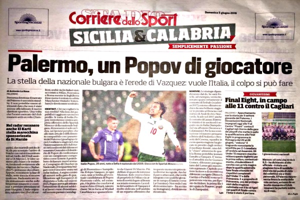 Corriere dello Sport: “Palermo, un Popov di giocatore. La stella della nazionale bulgara è l’erede di Vazquez”