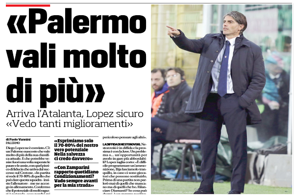 Corriere dello Sport: “«Palermo vali molto di più». Arriva l’Atalanta, Lopez sicuro: «Vedo tanti miglioramenti»”