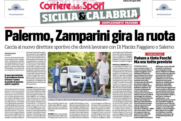 Corriere dello Sport: “Palermo, Zamparini gira la ruota. Caccia al nuovo ds che dovrà lavorare con Di Marzio: Faggiano o Salerno”