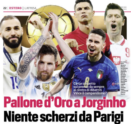 La lunga premessa serve per dire che, comunque, il patriottismo c’entra ed è una bella spinta a sostenere la sua candidatura, ma nella competizione del Pallone d’Oro di quest’anno, Jorginho è in testa al mio personalissimo cartellino anche se non indossasse la maglia azzurra. I francesi, bontà loro, nell’anticipazione dell’Équipe, parente di France Football, hanno inserito Jorginho nella lista ristretta dei cinque uomini che potrebbero diventare d’oro. Con il nostro Frello ci sono: Lionel Messi, ça va sans dire, recordman con sei attribuzioni, l’ultima nel 2019; Cristiano Ronaldo, pure lui sempre prese nte, cinque titoli; Karim Benzema; Robert Lewandowski, che un anno fa lo avrebbe meritato per aver trascinato al successo in Champions League il Bayern Monaco. Però nel 2020 i francesi non lo hanno assegnato, anche perché gli giravano (cfr. Paolo Conte) per non aver ripreso il loro campionato, a differenza di tutti gli altri tornei più importanti. Quindi stabilirono che, se non l’avevano ripreso loro, il pallone non s’era visto. Da vecchio frequentatore di sagrestie mi viene il sospetto che se il Psg avesse vinto la Champions, chissà, il Pallone d’Oro l’avrebbero tirato fuori prontamente dalla scatola. Ma ha perso, quel dommage.