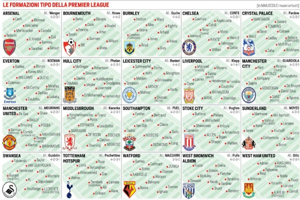 OUTSIDER. Il West Ham di Bilic si trasferisce all’ex Stadio Olimpico e lo fa rafforzato dai vari Ayew e Feghouli. L’Everton adesso ha un proprietario miliardario (Moshiri) e un tecnico (Koeman) che ha fatto grandi cose a Southampton. E a proposito di Southampton – che ogni anno vende e si rinnova senza perdere colpi – sperano di avere trovato il jolly con il francese Puel nonostante le molte partenze (Mané, Wanyama, Pellè). Ambizioso è il Crystal Palace, che ha speso molto per l’esterno Townsend e lo stopper Tomkins: i proprietari si aspettano il salto di qualità. Lo Stoke di Hughes – tre stagioni consecutive al nono posto – è l’emblema della stabilità. Guidolin ha fatto un mezzo miracolo allo Swansea, dovrà ripetersi senza Ayew e Paloschi sostituiti dall’ex juventino Llorente e il brillante Borja Baston. Mazzarri, al primo impatto con l’Inghilterra, guiderà il Watford della famiglia Pozzo puntando sui giovani (Peñaranda e Success). Le altre, sulla carta, lottano per non retrocedere. Dal Sunderland di Moyes (pure lui alla ricerca della riscossa) al minuscolo Bournemouth del genietto Howe al West Brom del rudimentale Pulis. Più ovviamente le tre neopromosse: Middlesbrough, Burnley e Hull“. Questo quanto riporta l’edizione odierna del “Corriere dello Sport”.