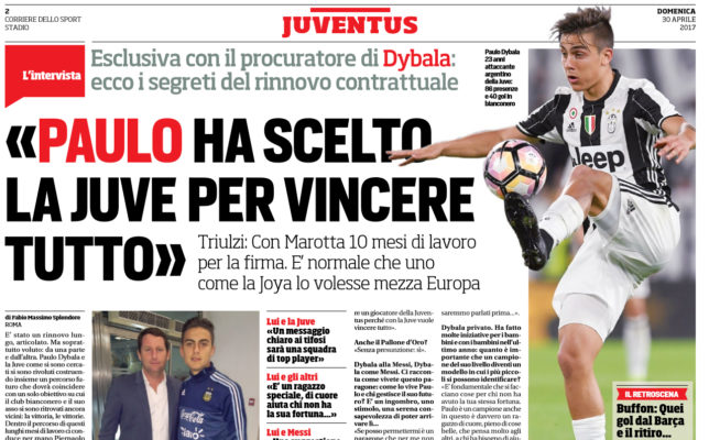 Corriere dello Sport: «Paulo ha scelto la Juve per vincere tutto». Triulzi: «Può vincere il pallone d’oro»”