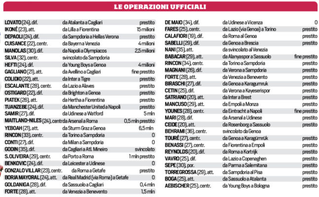 L’edizione odierna de “Il Corriere dello Sport” si sofferma sulle trattative del giorno in serie A.