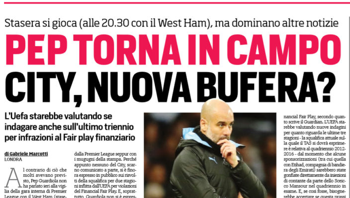Corriere dello Sport: “Pep torna in campo. City, nuova bufera?”