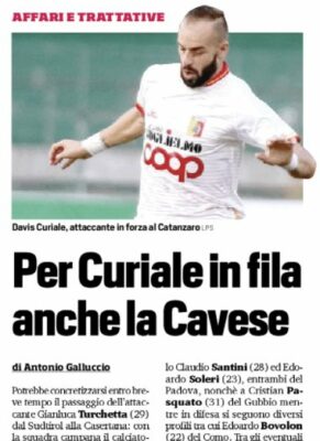 L’edizione odierna del “Corriere dello Sport”, parla del mercato che sta per partire in serie C. Il Potenza è in corsa per il centrocampista Michele Bruzzo, mentre alla cavese piace Curiale del Catanzaro.