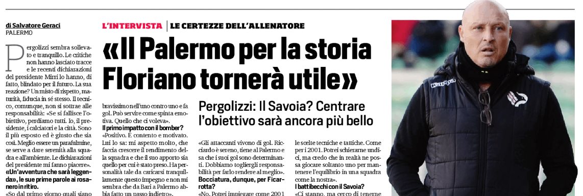 Corriere dello Sport: “Pergolizzi: «Il Palermo per la storia, Floriano tornerà utile»”