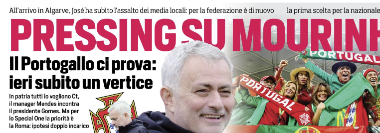 L’edizione odierna de “Il Corriere dello Sport” si sofferma sul Portogallo in pressing su Mourinho.