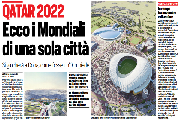 Corriere dello Sport: “Qatar 2022 Mondiale a km zero, tutto in un’unica città…”