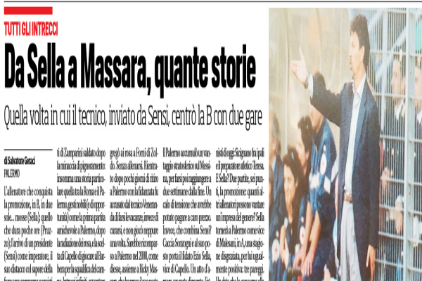 SENSI. Arrivò a Palermo con la sciarpa rosa tra il tripudio dei tifosi. Partenza col botto. Il Palermo accumulò un vantaggio stratosferico sul Messina, per farsi poi raggiungere a due settimane dalla fine. Un calo di tensione che avrebbe potuto pagare a caro prezzo. Invece, che combina Sensi? Caccia Sonzogni e al suo posto porta il fidato Ezio Sella, vice di Capello. Un atto d’amore, un gesto disperato. Fatto sta che Sella vince a Nocera, batte l’Ascoli e con la contemporanea sconfitta del Messina ad Avellino (rigore calciato da Torino e parato da Sansonetti a tempo scaduto…) consegna la promozione ai rosa che avevano in organico due protagonisti di oggi: Sicignano fra i pali e il preparatore atletico Teresa. E Sella? Due partite, sei punti, la promozione: quanti altri allenatori possono vantare un’impresa del genere? Sella tornerà a Palermo come vice di Malesani, in A, una stagione disgraziata, per lui ugualmente positiva: tre pareggi. Un dato che lo consegna alla leggenda come imbattuto! Poi, Sensi, in un mare di guai, cede a Zamparini. Il Palermo è già in ritiro con i suoi giocatori e con Pruzzo allenatore. Pruzzo dura un… allenamento, al suo posto Glerean. Il gruppo di Sensi e lo stesso Perinetti fanno le valigie. La squadra di Zamparini resta a Longarone; i Paoletti, i Bagnacani, i Panarelli e qualche altro vanno a Roma, con il bus dell’albergo (che viaggio!) e sempre con Pruzzo continuano gli allenamenti. In quel momento esistono tante anime di un solo Palermo costruito con il travaso di elementi dal Venezia. Quella che va a Roma è la squadra dell’isola che non c’è, trasversale al vero Palermo e perfino alla Roma. Sembra un secolo. Era solo il primo giorno di Zamparini“. Questo ciò che si legge sull’edizione odierna de “Il Corriere dello Sport”.