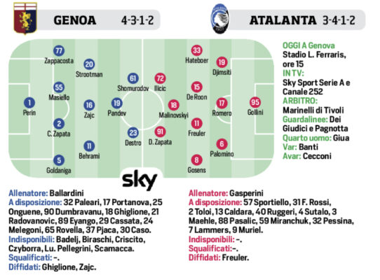 Corriere dello Sport: “Serie A. Alle 15 c’è Genoa-Atalanta. Le probabili formazioni”