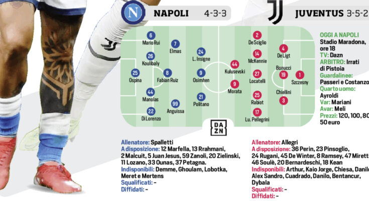 L’edizione odierna de “Il Corriere dello Sport” si sofferma sulle probabili formazioni di Napoli-Juventus in programma questo pomeriggio.