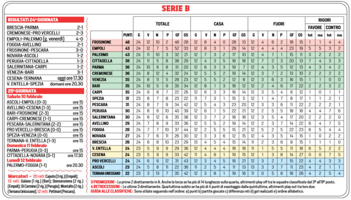 Corriere dello Sport: “Serie B, la classifica aggiornata e il programma della prossima giornata”