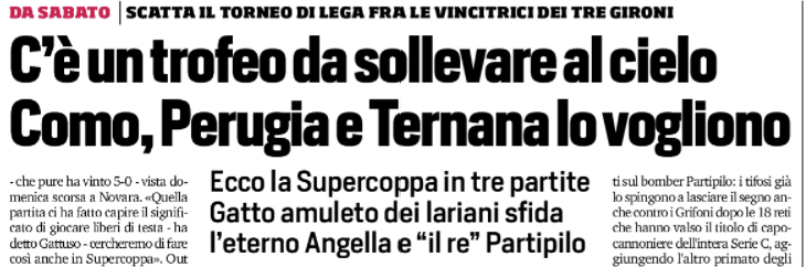 Corriere dello Sport: “Serie C. C’è un trofeo da sollevare al cielo. Como, Perugia e Ternana lo vogliono”