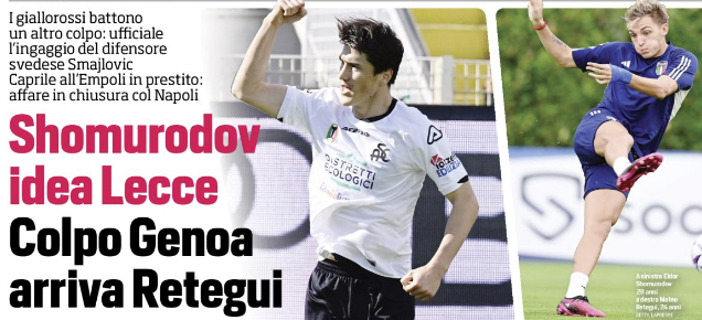 Corriere dello Sport: “Shomurodov idea Lecce. Colpo Genoa arriva Retegui. Tutte le trattative del giorno in serie A”