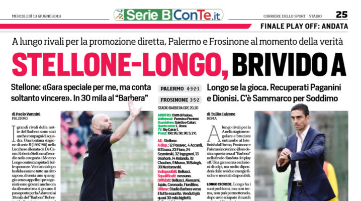 Corriere dello Sport: “Stellone-Longo, brivido A. In 30 mila al Barbera”