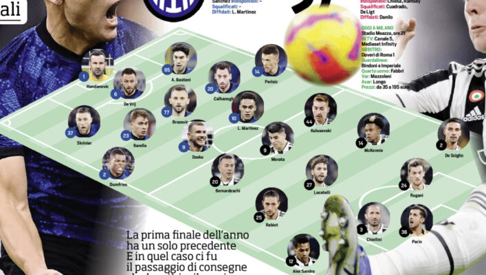 Inter-Juventus di Supercoppa italiana è un rito di passaggio. Potrebbe sancire il nuovo dominio nerazzurro, perché la Supercoppa è uno dei due trofei che Madama ha vinto un anno fa e quindi strapparglielo ha un valore simbolico. Confermerebbe il disavanzo già presente in campionato, con la Juventus che ora è a meno 11 dall’Inter, con la diversificazione evidente degli obbiettivi, con la prima che pensa al secondo scudetto consecutivo (il ventesimo in assoluto) e la seconda che ha un risultato minimo ma comunque importante, il quarto posto, lo “scudettino” che è una bombola d’ossigeno finanziario.