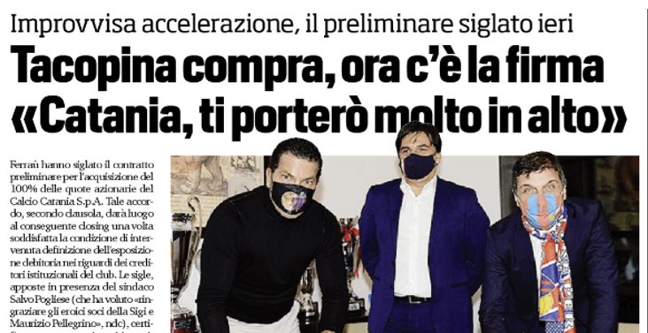 Corriere dello Sport: “Tacopina compra, ora c’è la firma «Catania, ti porterò molto in alto»”
