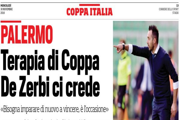 “Una scintilla per spezzare «l’abitudine a perdere» e ripartire con uno spirito diverso. Cosa importa se è Coppa Italia, il Palermo ha bisogno di riassaporare il gusto della vittoria per tornare a credere in se stesso. D’altronde, fu proprio un terribile ed imprevisto ko in Coppa, un anno fa con l’Alessandria che militava in Lega Pro, a scatenare un putiferio che portò all’epurazione di Maresca (poi reintegrato) e Rigoni, svenduto al Genoa dove oggi è grande protagonista. NON TEMO L’ESONERO. De Zerbi non sembra particolarmente sollevato per l’inattesa conferma. Il suo vero cruccio è risolvere i problemi di una squadra sbagliata e che andrà corretta a gennaio. «Non ho paura dell’esonero, quello che non mi fa dormire la notte sono le sconfitte di fila e il non aver dato l’impronta che vorrei. A dimettermi non ho mai pensato, sarebbe da persona di poco valore e senza coraggio. Se si pensa che sia per l’aspetto economico (la clausola da 500.000 euro che lo tutela, ndc.), allora sono pronto a valutare un passo indietro. Io volevo firmare un anno, il presidente mi ha proposto 3 (il contratto è per due). Ma a me interessa altro, l’affermazione come allenatore. Non mi fa piacere essere messo in discussione ogni partita ma visti i risultati devo accettarlo e combattere. Vado avanti ascoltando tutti in maniera onesta ma sempre con la mia testa. Ciascuno di noi deve assumersi le proprie responsabilità e reagire, se no è facile scaricare ogni colpa sul presidente, l’allenatore di turno o il fattore ambientale». Coppa Italia odierna a parte, ripete la sua ricetta per risalire: «La salvezza passa dalla convinzione di poter mettere sotto 3 squadre che hanno i nostri stessi problemi; dal recupero degli infortunati; e dalla rivisitazione della rosa a gennaio». FORMAZIONE TUTTA NUOVA. «Ho preparato la gara con lo Spezia come fosse campionato – afferma De Zerbi – per noi è un’occasione da cogliere nella maniera giusta. Dobbiamo reimparare a vincere, per questo è una partita importante: inoltre abbiamo addosso una maglia e dobbiamo rispettarla». Inevitabile però un turn over quasi totale anche a causa delle assenze forzate: ultimo ko quello di Bruno Henrique, operato ieri a Novara ad una mano per la riduzione e sintesi di una frattura metacarpale. Parerà Fulignati, riposo per Aleesami e Nestorovski, Diamanti (problemi ad un adduttore) andrà in panchina per far gruppo. Davanti un tridente senza punte vere, formato dai giovanissimi Sallai e Lo Faso più Quaison. «Voglio più spensieratezza e non solo dai giovani, soffro a vedere che la squadra non si rispecchia ancora nel mio calcio, ma io non chiedo di fare il Barcellona, vorrei solo più coraggio, senso di appartenenza e non farsi trascinare dal vortice delle paure. I giocatori non devono farlo per me, ma prima di tutto per se stessi: ci si salva tutti assieme. Il Pescara, che pure lui ha fatto 6 sconfitte, a Roma ha provato a giocarsi la partita anche sul 2-0. Non deve succedere di abbattersi dopo un gol subìto. Per questo anche dalla Coppa mi aspetto una scintilla che possa farci riaccendere»”. Questo quanto si legge su “Il Corriere dello Sport”.