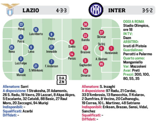 L’edizione odierna de “Il Corriere dello Sport” si sofferma sulla gara di oggi tra Lazio e Inter.