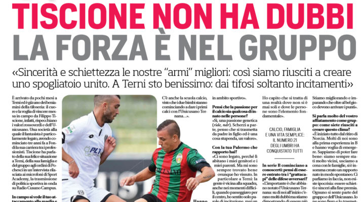 Corriere dello Sport: “Un palermitano a Terni. Tiscione non ha dubbi: «La forza è nel gruppo»”