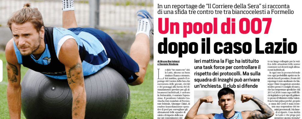 L’edizione odierna del “Corriere dello Sport” si sofferma sul caso Lazio. Le partitelle “tre contro tre” hanno spinto Gravina a dare mandato al Procuratore federale Chinè i rendere operativo il pool per sorvegliare gli allenamenti dei club. Verranno mobilitati 40 ispettori su tutto il territorio nazionale, anche con l’ausilio di droni, già a disposizione per le azioni di sorveglianza.