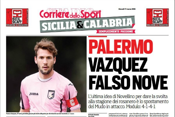 L’odierna edizione de “Il Corriere dello Sport”, si sofferma sulla nuova posizione che Franco Vazquez potrebbe assumere in campo nell’11 di Walter Novellino. Il nuovo tecnico rosanero vuole fare del “Mudo” un falso nueve. Ecco quanto si legge sul suddetto quotidiano: “Vazquez “falso nueve”. Centravanti arretrato, si sarebbe detto qualche tempo fa. Con due esterni d’attacco che tagliano verso il centro e due interni che accoppiano corsa e capacità di inserimento. Ecco la nuova idea di Novellino, l’ennesimo tentativo di assemblare il materiale rosanero in maniera diversa per far rendere al meglio la squadra. O di nascondere il più possibile i difetti e provare a ottimizzare i pregi. Insomma, un altro modulo, l’ennesimo della stagione, ma forse confacente al momento ed alle esigenze di una squadra senza pace. SfruttareVazquez. Il Palermo ha bisogno di far gol, segna col contagocce (una rete nelle ultime 4 giornate), ha pochissimi giocatori capaci di indirizzare le partite con una invenzione, una giocata fantasiosa, un tiro da fuori vincente. Dunque, il nuovo allenatore mira a trovare equilibrio difensivo sì ma anche a cambiare qualcosa nella fase d’attacco. Servono più iniziative, più coraggio e magari movimenti diversi. Il secondo tempo della gara col Napoli è piaciuto a Novellino, si insisterà dunque su quel canovaccio. Anche perché la condizione atletica messa in mostra dalla squadra è apparsa soddisfacente, e lo stesso Iachini, nei colloqui telefonici intercorsi fra i due, ha confortato Walter in tal senso. La nuova proposta è il 4-1-4-1, sistema assolutamente inedito per le recenti stagioni rosanero. Un play davanti i 4 difensori e una linea di centrocampo piuttosto alta, ai cui lati agirebbero giocatori con forte propensione offensiva, ma capaci anche di ripiegare. La vera differenza la darebbe il fatto che il riferimento offensivo centrale non sarebbe più Gilardino e neppure Djurdjevic, ma Franco Vazquez. Domenica sera il Palermo si è schierato proprio così dal 10′ del 2° tempo, piazzando Quaison largo a destra e Djurdjevic, finora utilizzato sempre come prima punta, largo a sinistra. Non sono state faville ma qualcosa si è visto. Novellino pensa di replicare la formula sabato ad Empoli, utilizzando però sulle fasce Quaison e Trajkovski, ed eventualmente facendo un pensierino persino a Bentivegna. Niente centravanti tradizionale, Gilardino in panchina, Vazquez a ricevere palla per provare a smistarla sugli esterni che si buttano dentro. Tutto sulla carta, ovviamente. Perché qualsiasi modulo sembra sempre perfetto nella descrizione ma va poi sperimentato praticamente sul campo. L’idea è comunque di valorizzare le doti tecniche del Mudo, che più vicino alla porta può concludere o liberare un compagno per l’assist. Resta il problema degli equilibri, insomma di non concedere troppo spazio agli avversari. Dunque i due esterni non dovranno essere delle ali pure ma giocatori che aiutano anche in difesa e i mediani della linea a 4 dovranno possedere senso di sacrificio e intensità. Delicato poi il ruolo del centrale davanti la linea arretrata. Jajalo in quella posizione non ha mai convinto e potrebbe essere dirottato fra gli interni, dando spazio a Maresca o a Brugman. Al momento sono tutti in corsa. L’alternativa. Ma Novellino ha confermato anche in questi giorni di prediligere il 4-4-2, che ha utilizzato molto spesso nella sua carriera. Formula tradizionale che potrebbe servire a dare solidità in una fase dove bisogna badare al sodo. Però nel Palermo non ci sono esterni di ruolo, e questo modulo con Trajkovski e Quaison a centrocampo finisce per essere più un 4-2- 3-1, con Vazquez trequartista dietro la punta che tornerebbe ad essere Gilardino, in ballottaggio con Djurdjevic e Balogh. Decisivo per l’applicazione del 4-4-2 “puro” potrebbe essere il rientro di Lazaar che già nel Varese giocava esterno alto di centrocampo, e permetterebbe così di confermare alle sue spalle il positivo Pezzella. Ma il marocchino quasi certamente per sabato non ce la farà, rinviando il suo ritorno a dopo la sosta (3 aprile a Verona col Chievo)”.