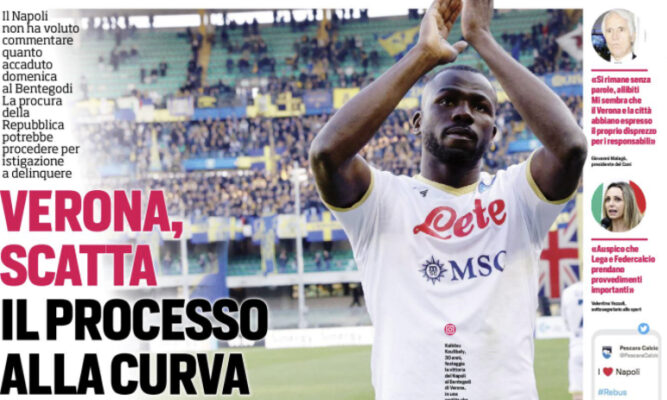 L’edizione odierna de “Il Corriere dello Sport” si sofferma sulla situazione relativa alla curva del Verona dopo lo striscione incriminato contro Napoli.