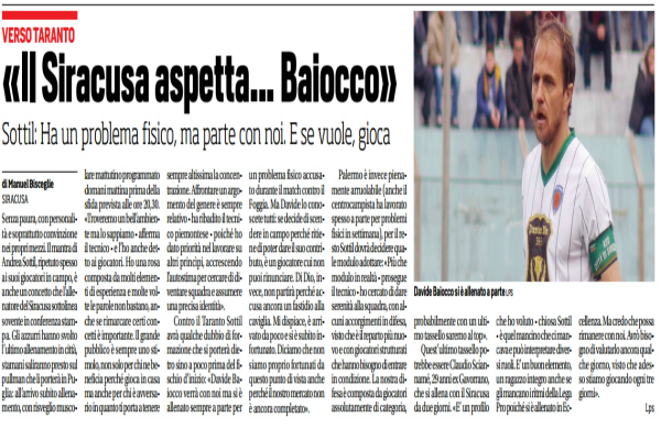 Corriere dello Sport: “Verso il Taranto: «Il Siracusa aspetta…Baiocco». Sottil: «Ha un problema fisico, ma parte con noi. E se vuole, gioca»”