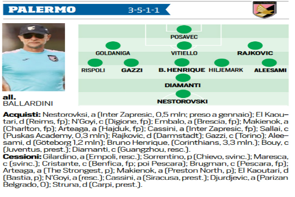 Corriere dello Sport: “Voto al mercato del Palermo 5,5. In avanti serviva qualcosa di vero…”