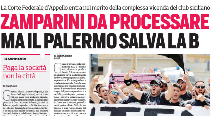 Corriere dello Sport: “Zamparini da processare, ma il Palermo salva la B”