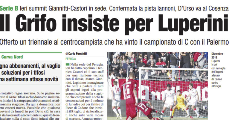 L’edizione odierna de “Il Corriere dell’Umbria” si sofferma sul forte interesse del Perugia per Luperini del Palermo.