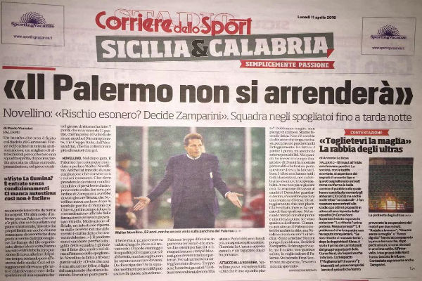 Corriere dello Sport: “Novellino: «Il Palermo non si arrenderà. Sono a rischio? Deciderà…»”