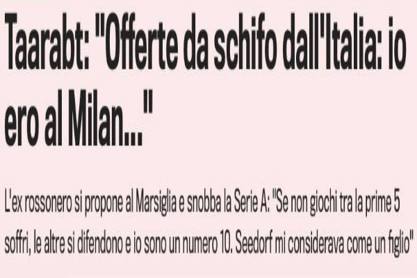 Curiosità, ecco le parole di Taarabt pochi giorni fa: «Dall’Italia offerte da schifo, io giocavo nel Milan»
