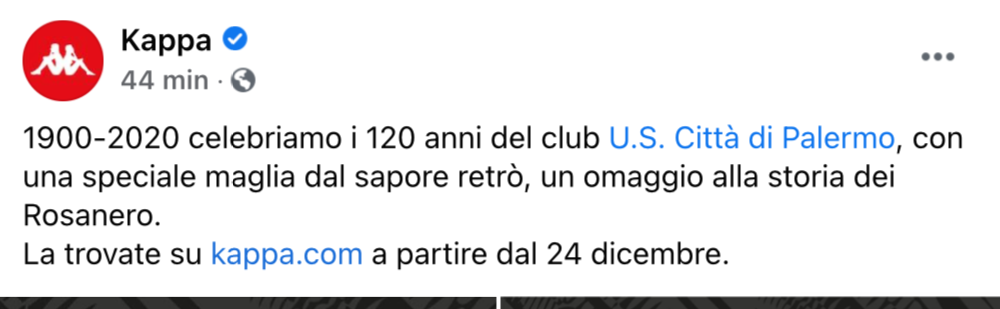 Curiosità, la Kappa “cita” il vecchio Palermo: la gaffe sul web e i commenti sfottò (FOTO)