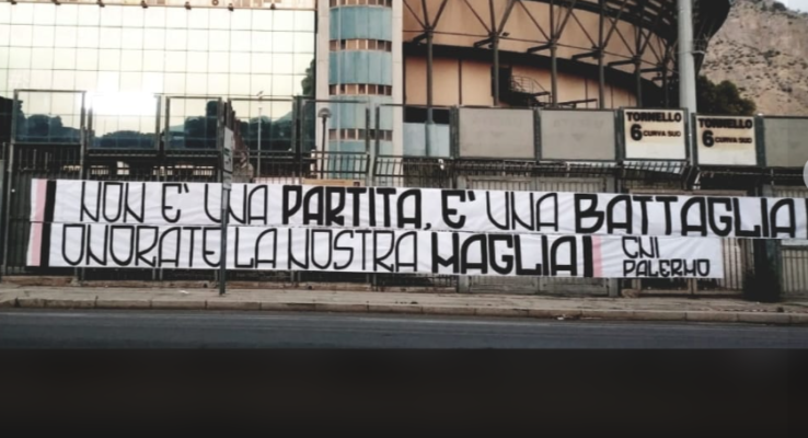 Gli ultras della Curva Nord Inferiore, hanno voluto lasciare un messaggio alla squadra rosanero davanti ai cancelli del “Renzo Barbera, in vista del derby con il Catania. Ecco il contenuto del messaggio: “NON È UNA PARTITA, È UNA BATTAGLIA. ONORATE LA NOSTRA MAGLIA!” NOI ODIAMO IL CALCIO CATANIA CURVA NORD INFERIORE PALERMO”.