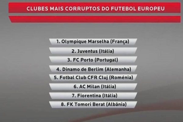 Negli ultimi giorni sta facendo parecchio discutere un video commento andato in onda sulla TV ufficiale del Benfica, un paio di settimane fa. Si tratta di un commento di un opinionista della TV del club lusitano che individuava i club più corrotti d’Europa. Mettendo al primo posto il Marsiglia, al secondo la Juventus ed al terzo il Porto. Tale classifica, secondo la tv portoghese, sarebbe stata stilata dal “Daily Mail”. Tuttavìa, stando a quanto riportato da “Fantagazzetta.com” tale classifica, non risulta negli archivi del quotidiano britannico. Tra le italiane nella graduatoria figurano anche Milan, Fiorentina, Lazio e Reggina. Tale dibattito non è andato giù alle dirette interessate. Su tutte il Porto, il cui responsabile della comunicazione ha subito attaccato il Benfica, dichiarando che il DM non avrebbe mai pubblicato un contenuto del genere, e che il club dei dragoes sarebbe pronto a contattare gli altri club citati in classifica per decidere una strategia comune. Di seguito la clip: