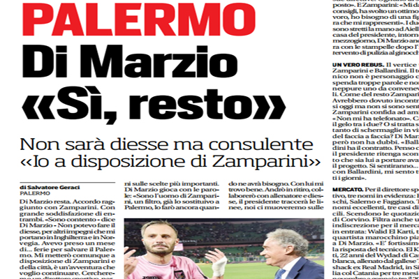 Di Marzio: «Contento di restare a Palermo, sono sempre a disposizione di Zamparini. Vi dico perchè ho rifiutato il ruolo da ds…»