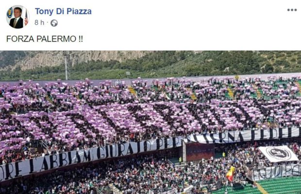 Negli ultimi giorni si è tornati a parlare di lui come possibile nuovo acquirente del Palermo. Stiamo parlando di Tony Di Piazza, che è uscito allo scoperto dichiarando la propria volontà di rilevare il club rosanero. Lo conferma anche con una foto pubblicata sul proprio profilo Facebook, foto che ritrae la curva Nord e dove vi è la didascalia “Forza Palermo”. In alto il post in questione.