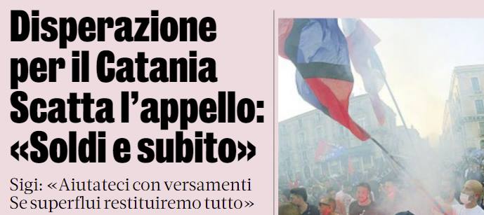 Appello della disperazione per il Catania come riporta l’edizione odierna de “La Gazzetta dello Sport”.
